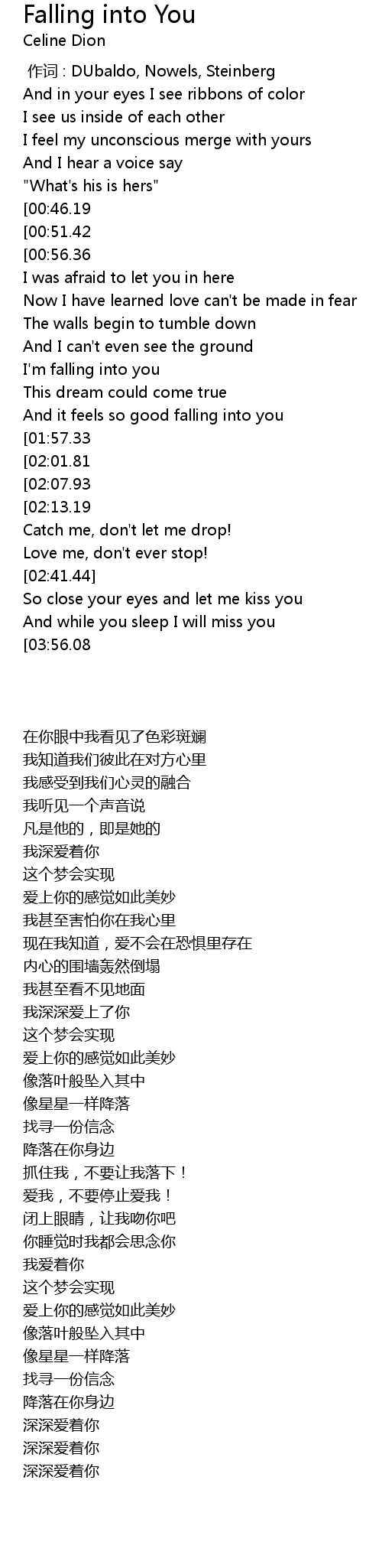 | [04:01.10][03:56.08][03:51.74] | Falling into you |