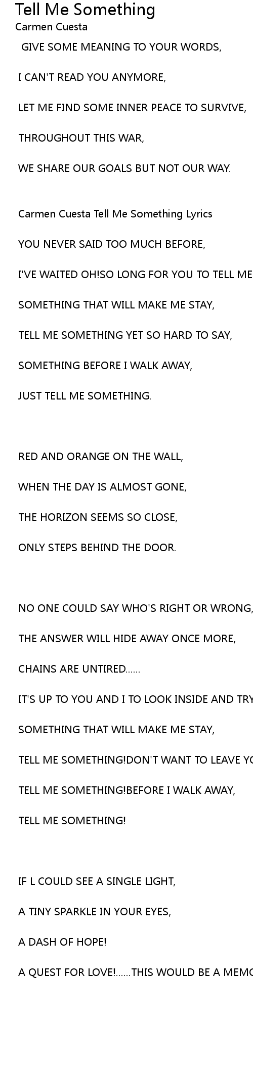 TELL ME SOMETHING!BEFORE I WALK AWAY, |