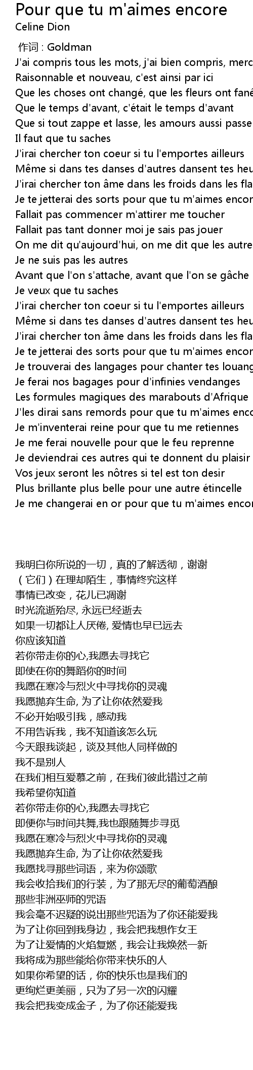 | [02:39.700] | J' les dirai sans remords pour que tu m' aimes encore |