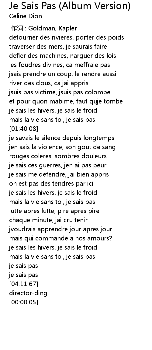 | [03:55.16] | mais la vie sans toi, je sais pas |