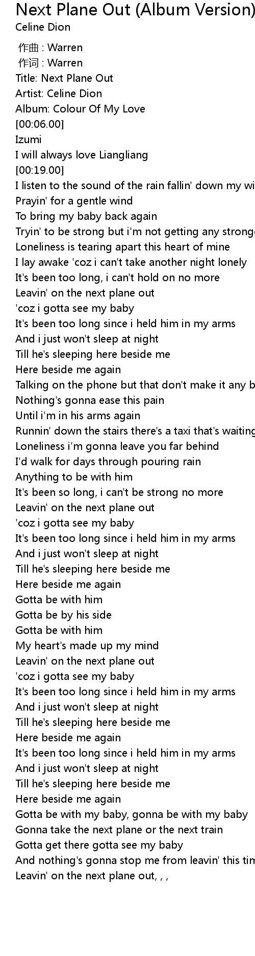 | [04:28.15] | Leavin' on the next plane out, , , |