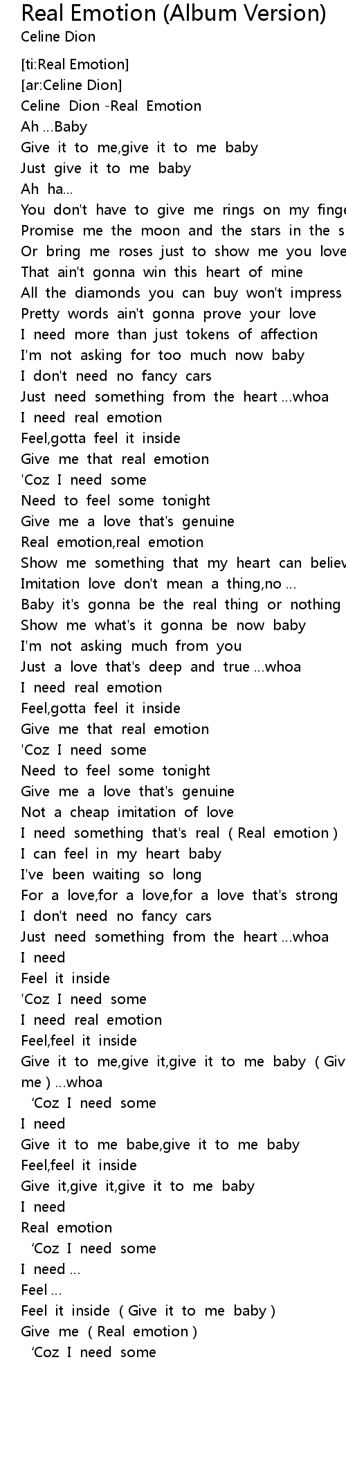 | [00:00.780] | Celine Dion Real Emotion |