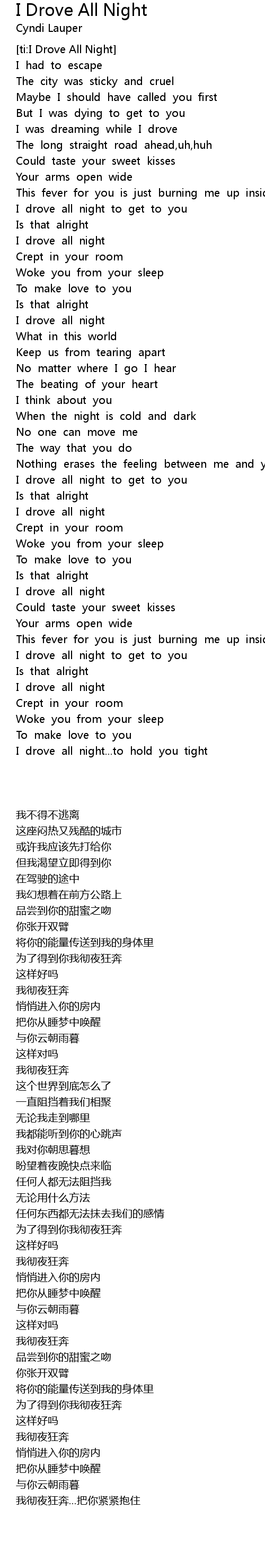 [ti:I Drove All Night]