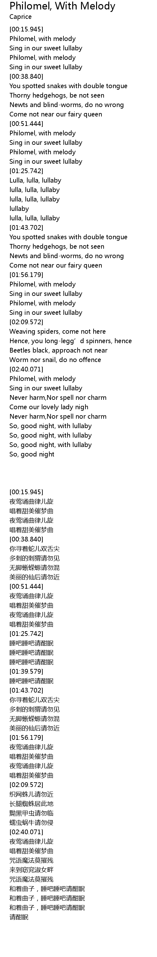 | [02:59.944] | Never harm,Nor spell nor charm |