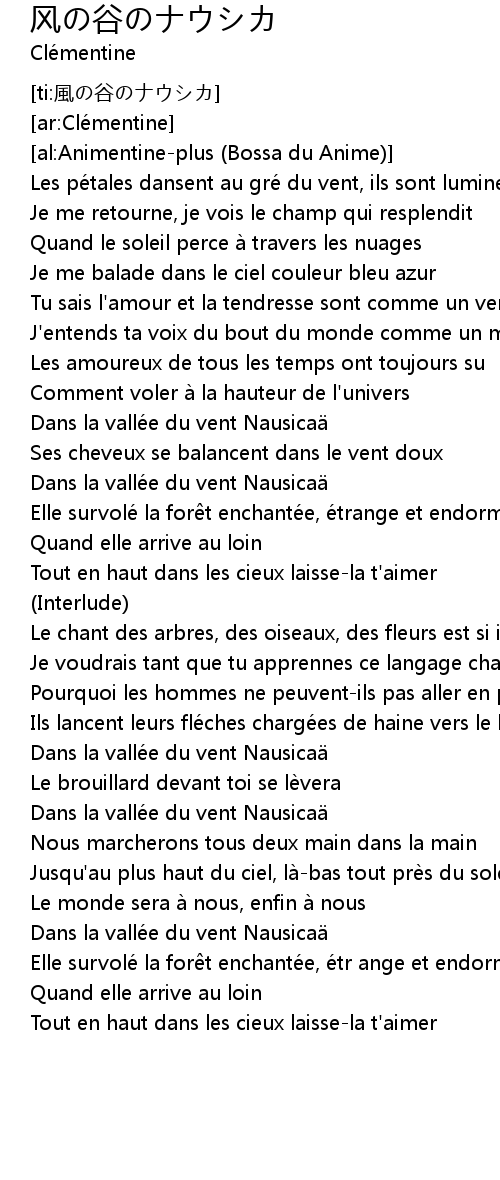 | [02:56.70] | Dans la vallé e du vent Nausica |