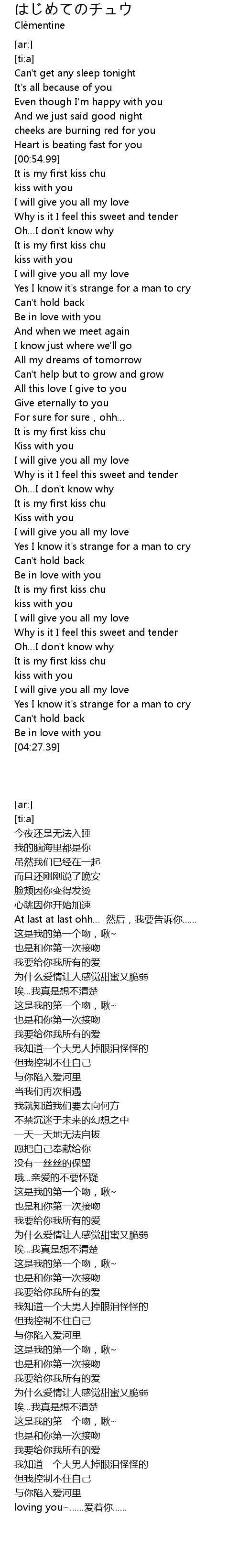 | [02:41.93] | It is my first kiss chu |