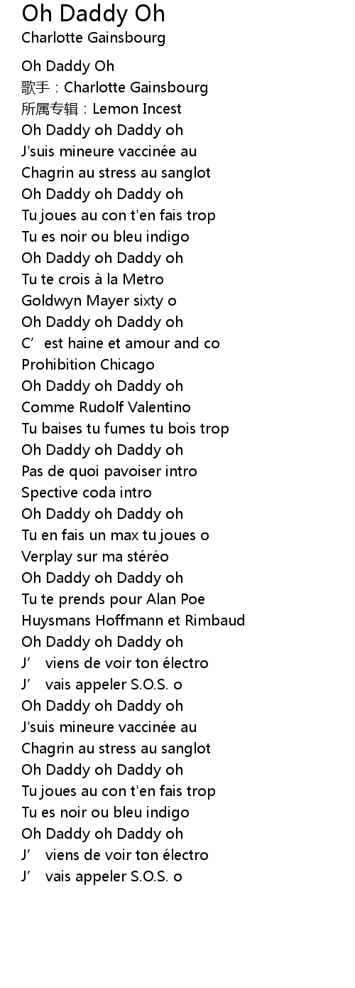| [00:00.00] | Oh Daddy oh Daddy oh |