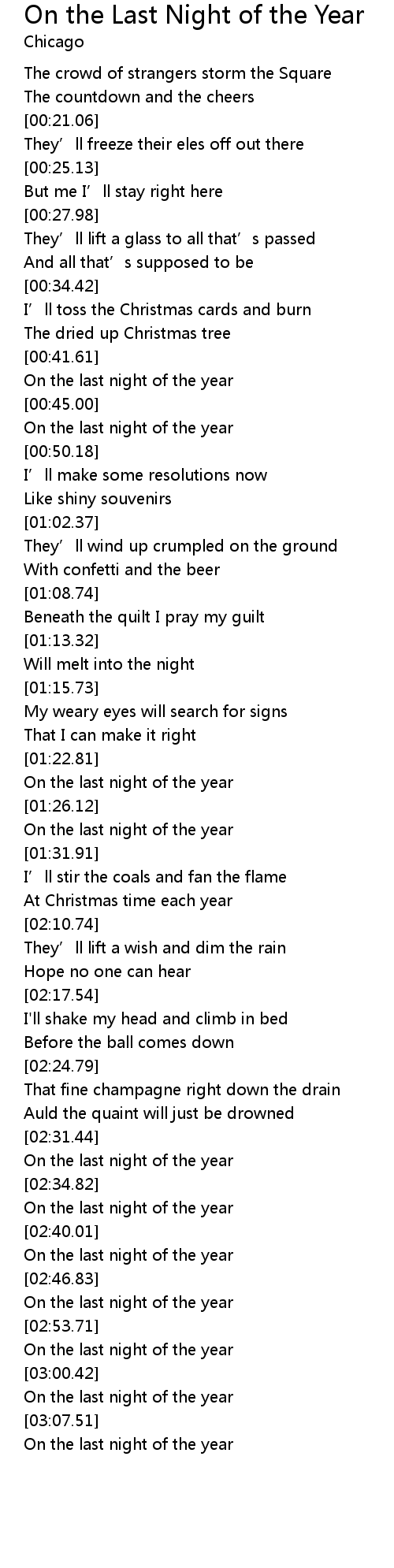 | [00:35.94] | I’ll toss the Christmas cards and burn |