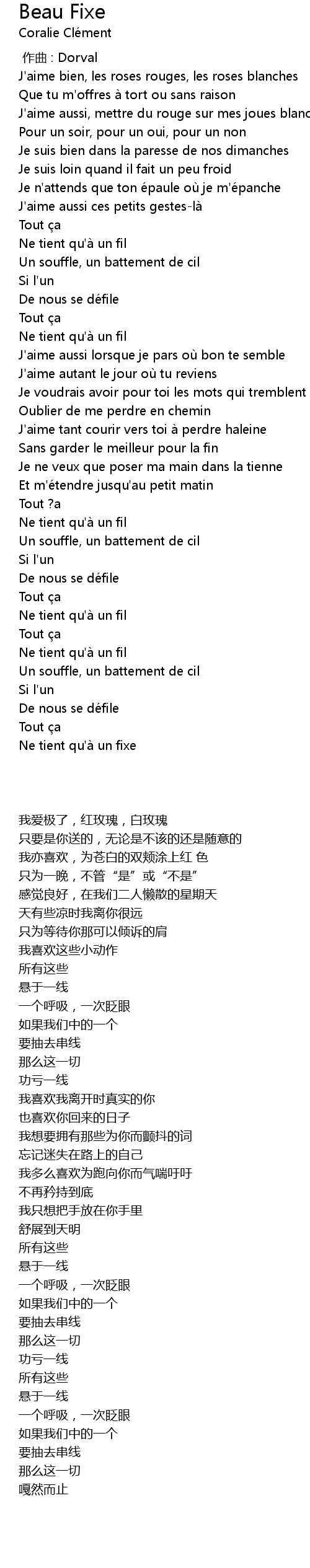 | [00:15.33] | J'aime bien, les roses rouges, les roses blanches |