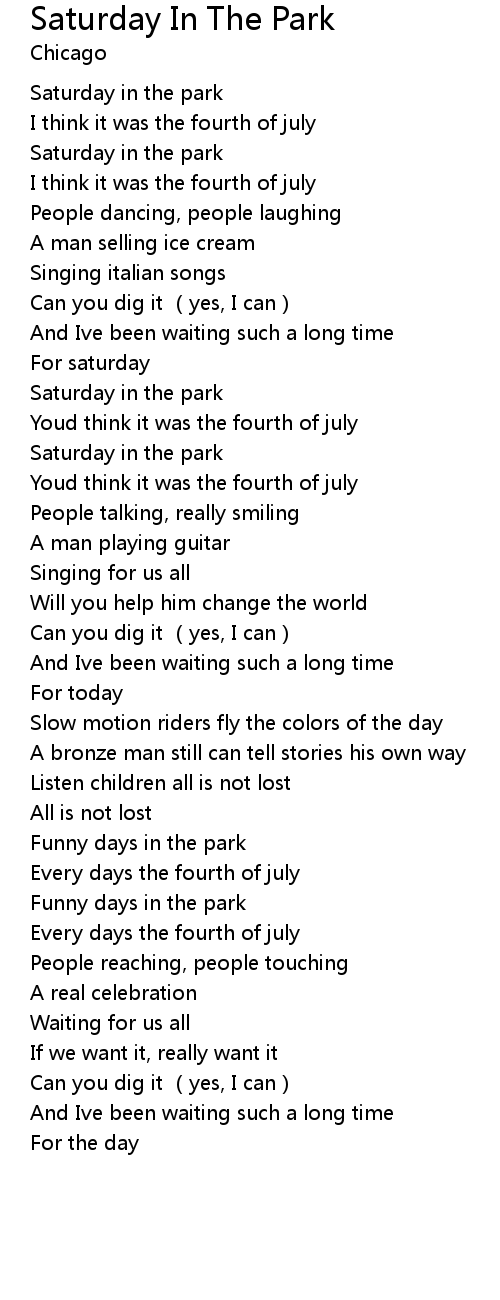 | [00:25.400] | Saturday in the park |