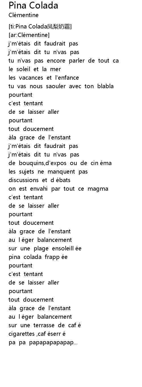 | ti: Pina Colada fèng lí nǎi shuāng | |