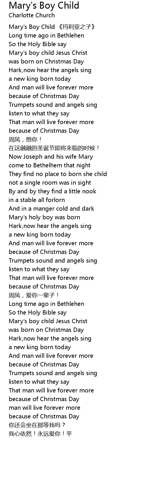 | [00:00.00] | Mary's Boy Child 《玛利亚之子》 |