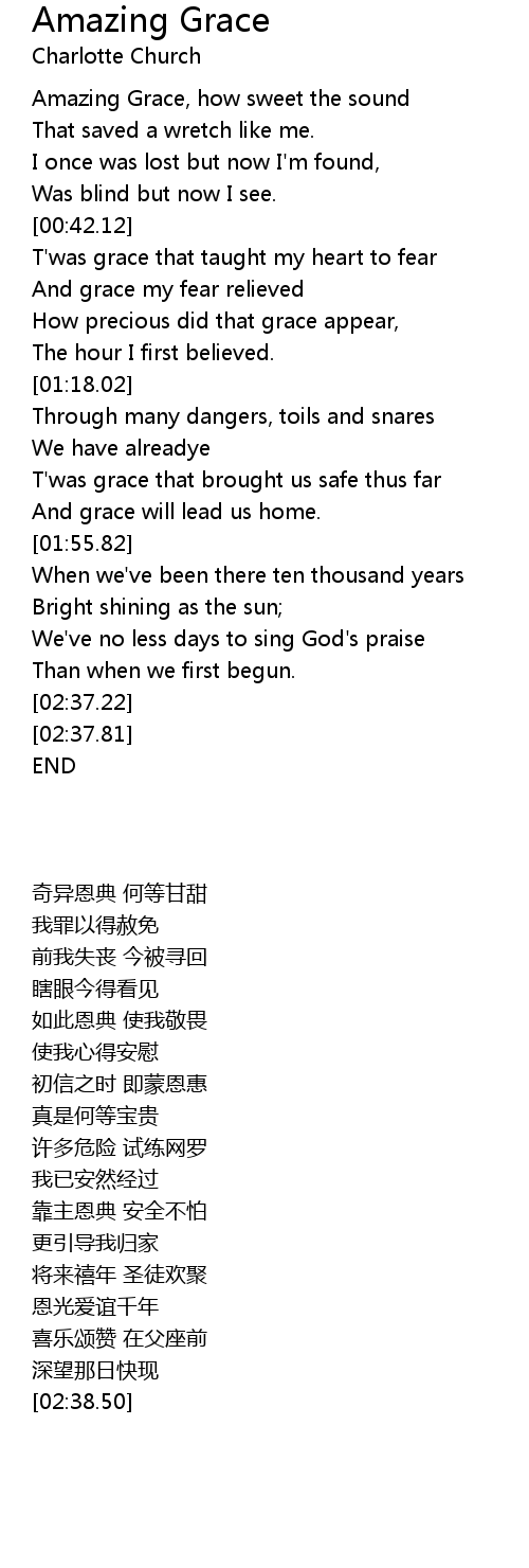 [00:05.65] Amazing Grace, how sweet the sound