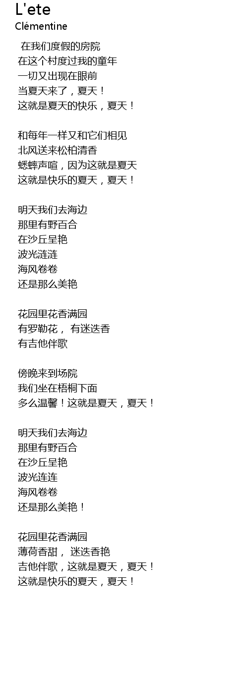 | Song | L'ete |