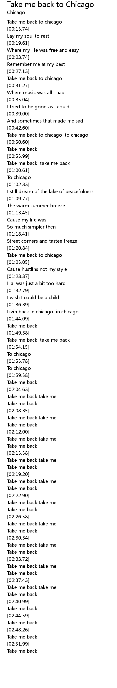 [01:22.67] Take me back to chicago