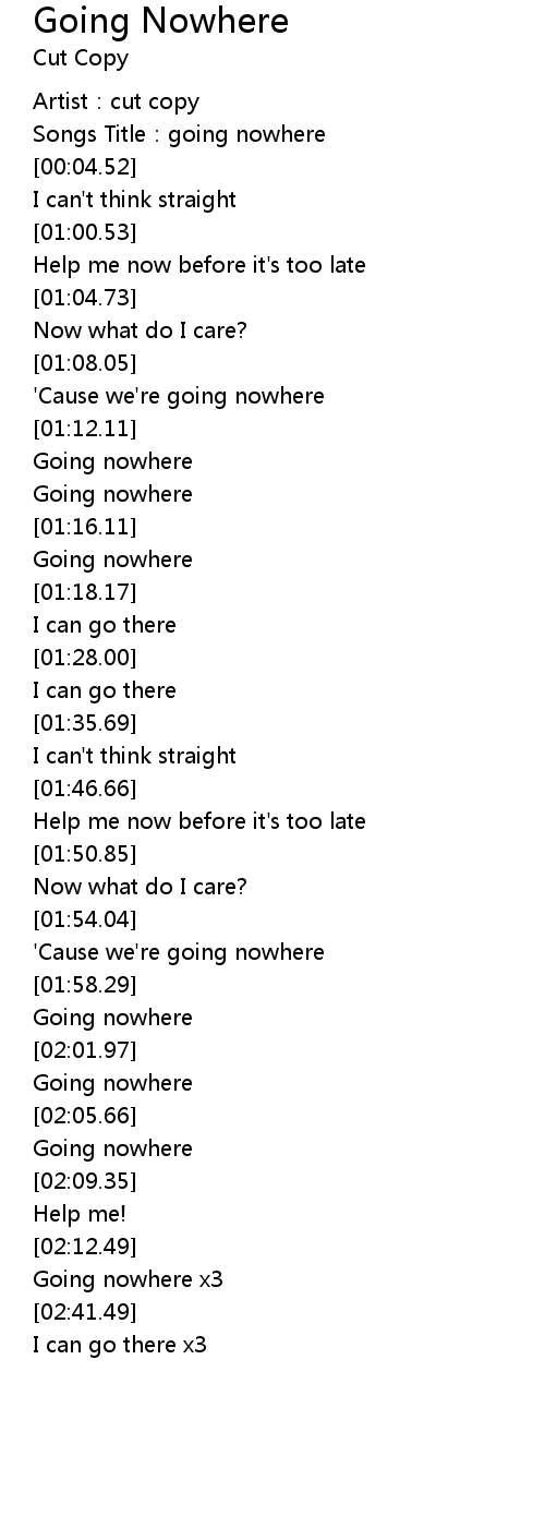| [02:40.67] | Going nowhere x3 |