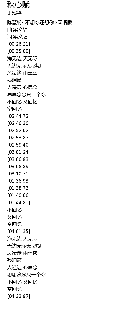 | [03:36.78][02:59.40][01:21.94] | 心上秋 |