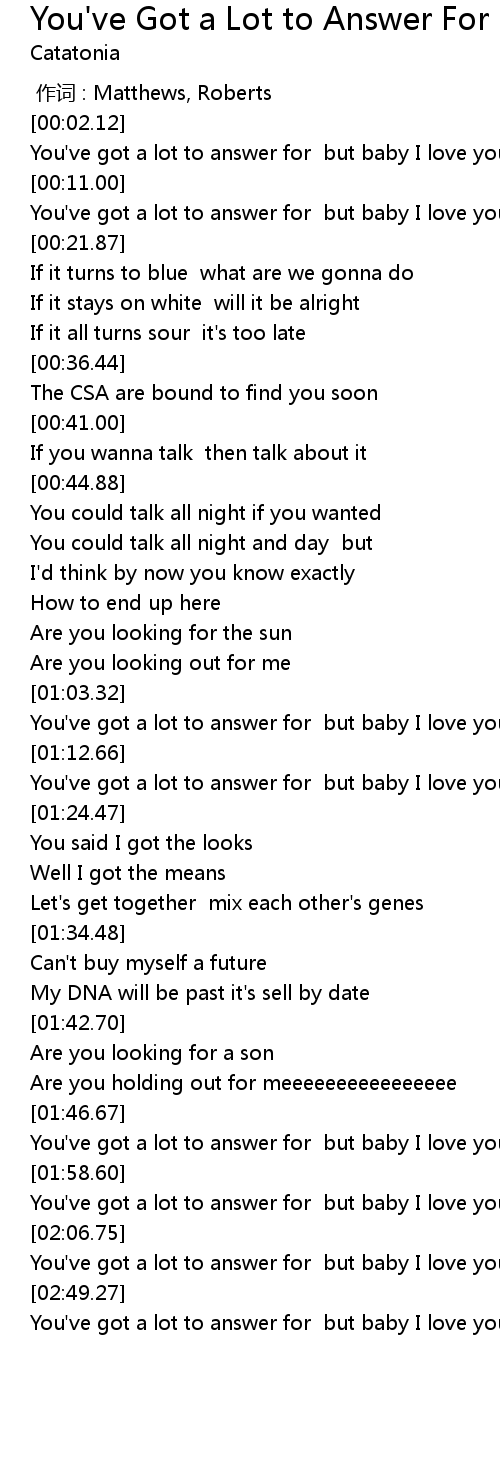 | [02:42.46] | You've got a lot to answer for but baby I love you |
