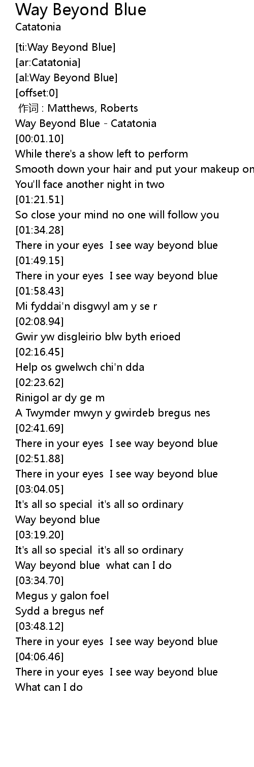 | [00:00.10] | Way Beyond Blue - Catatonia |