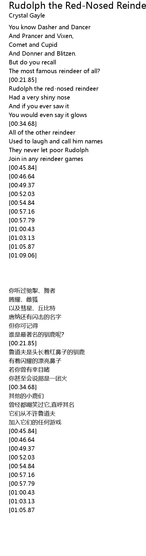 | [01:47.71][01:03.13] | "Rudolph the red-nosed reindeer “ |