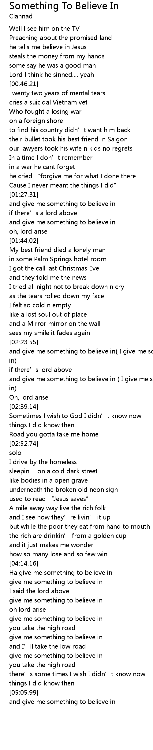 | [04:29.42] | give me something to believe in |