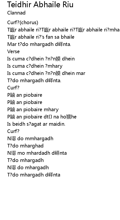 | T jí r abhaile ri? T jí r abhaile ri? T jí r abhaile ri? mhary | |