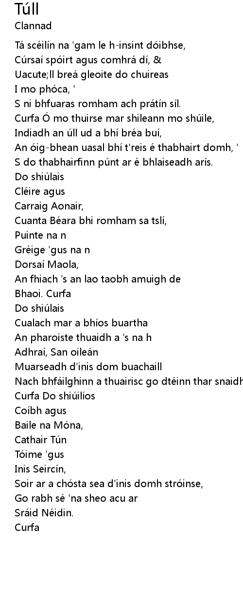 | Curfa Ó mo thuirse mar shileann mo shu ile, | |