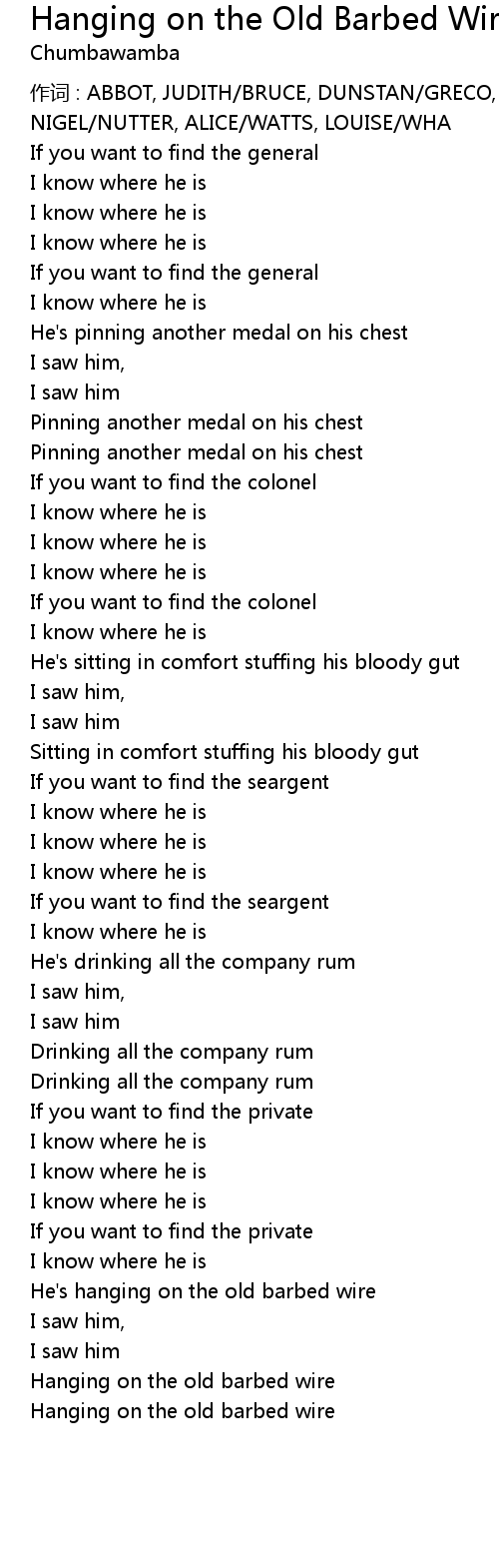 | 作词 : ABBOT, JUDITH/BRUCE, DUNSTAN/GRECO, PAUL/HAMER, DARREN/HUNTER, NIGEL/NUTTER, ALICE/WATTS, LOUISE/WHA | |