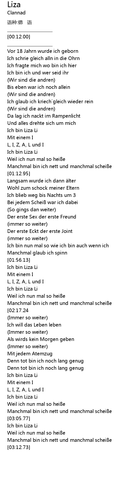| [03:06.77] | Ich bin Liza Li |