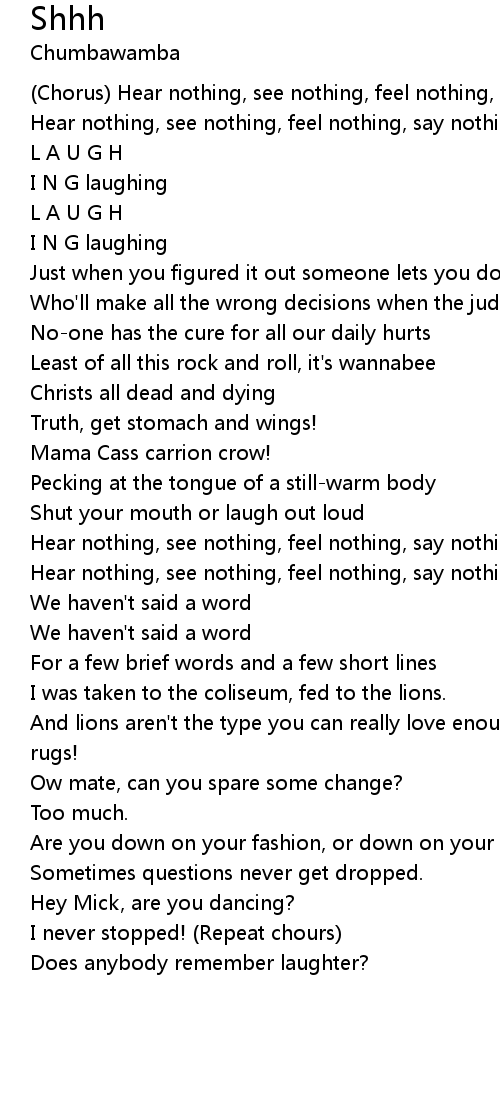 Hear nothing, see nothing, feel nothing, say nothing (Repeat chorus) |