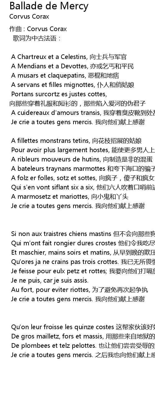 | 歌词为中古法语: | |