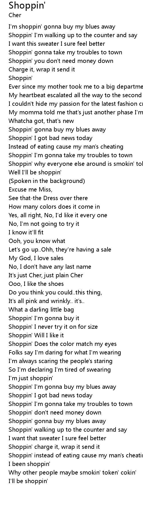 | Shoppin' I'm gonna buy my blues away | |