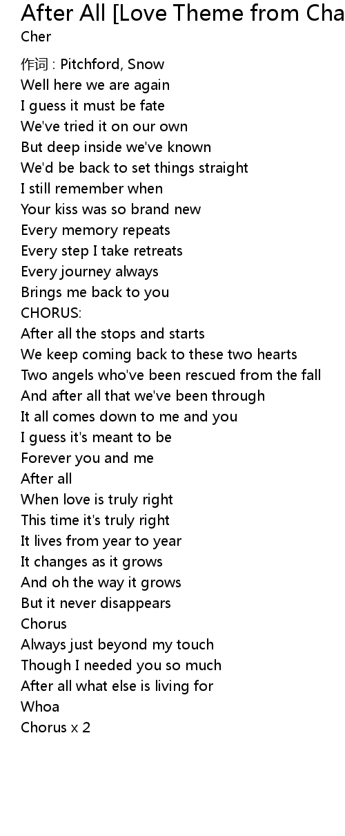 | Song | After All [Love Theme from Chances Are] |