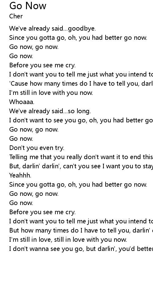 | I don't wanna see you go, but darlin', you'd better go now. |