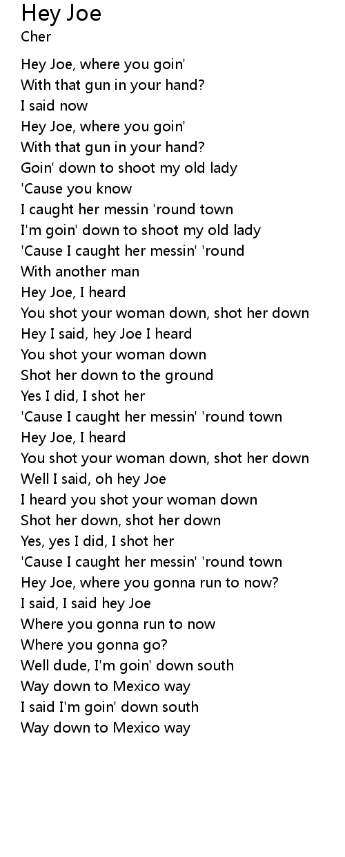 Hey Joe, where you goin' |