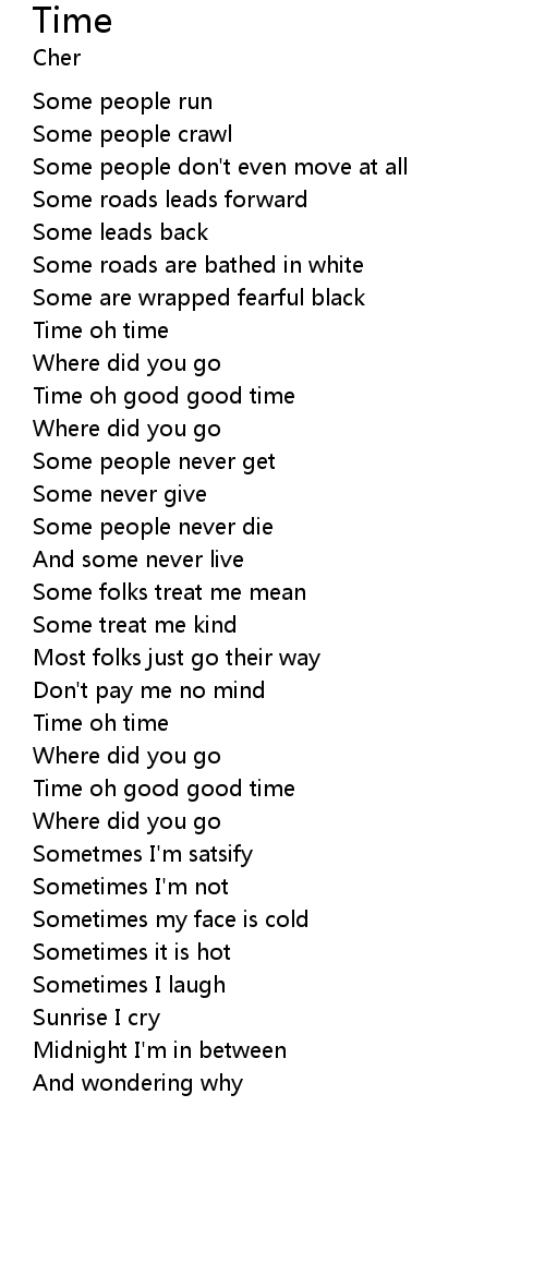 Time oh good good time |
