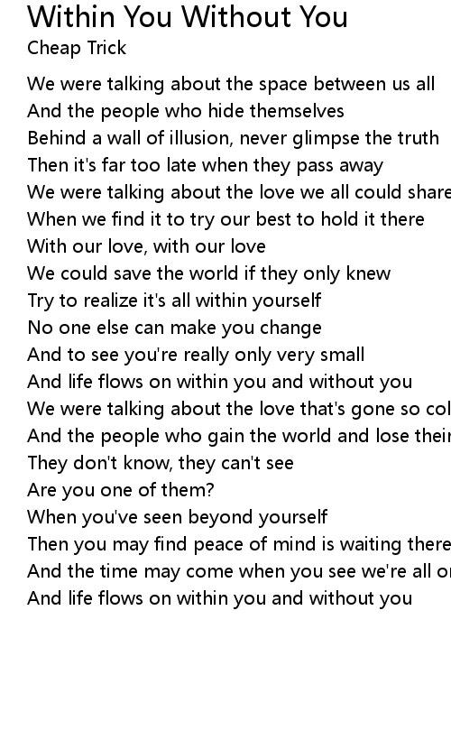 And life flows on within you and without you |