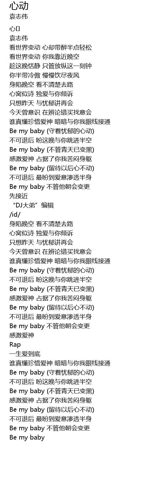 | [01:28.50] | Be my baby (留待以后心不动) |
