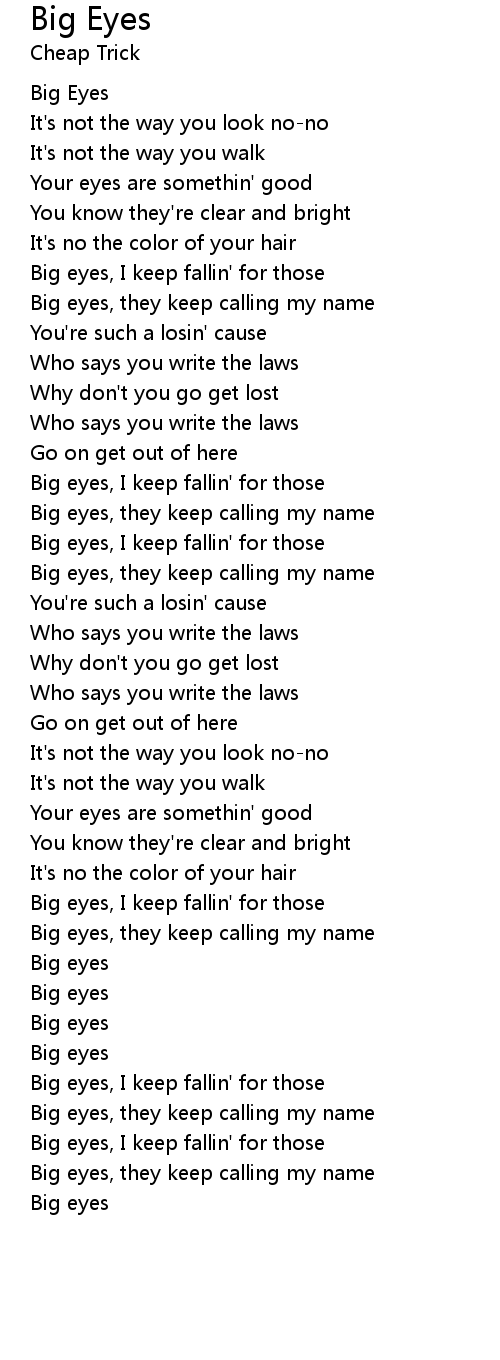 Big eyes, they keep calling my name |