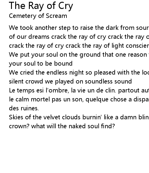 We took another step to raise the dark from source to drink from vanity the wall of our dreams crack the ray of cry crack the ray of light to fade out the sun crack the ray of cry crack the ray of light conscience stopped by the gun |