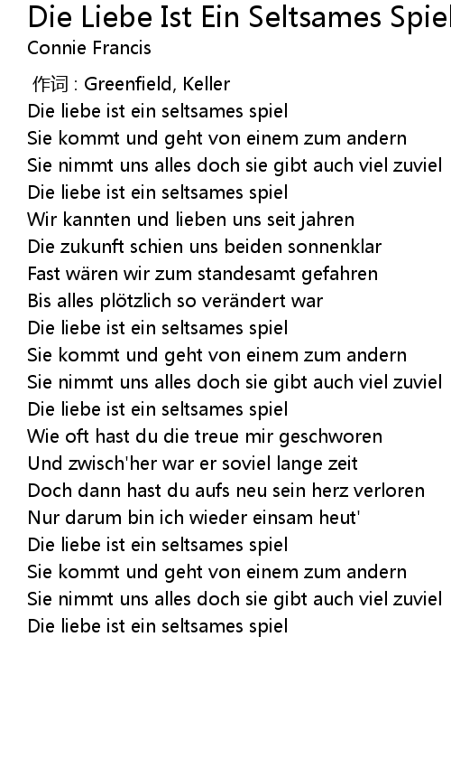| Song | Die Liebe Ist Ein Seltsames Spiel |
