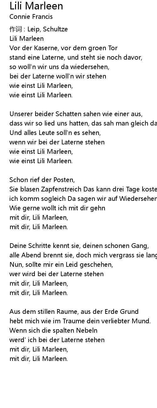 | wie einst Lili Marleen. | |