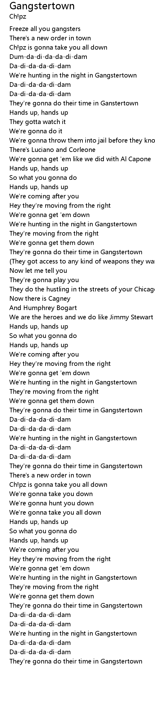 They're gonna do their time in Ganstertown |