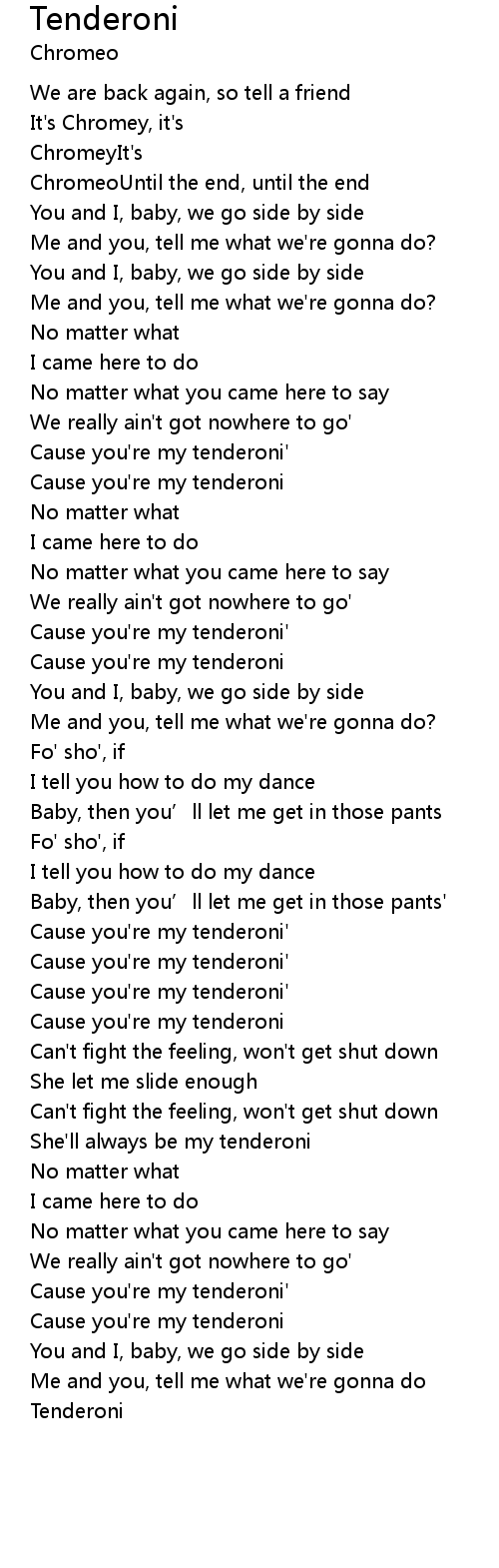 | Cause you're my tenderoni' | |