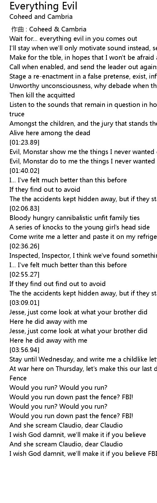 | [00:00.00] | 作曲 : Coheed & Cambria |