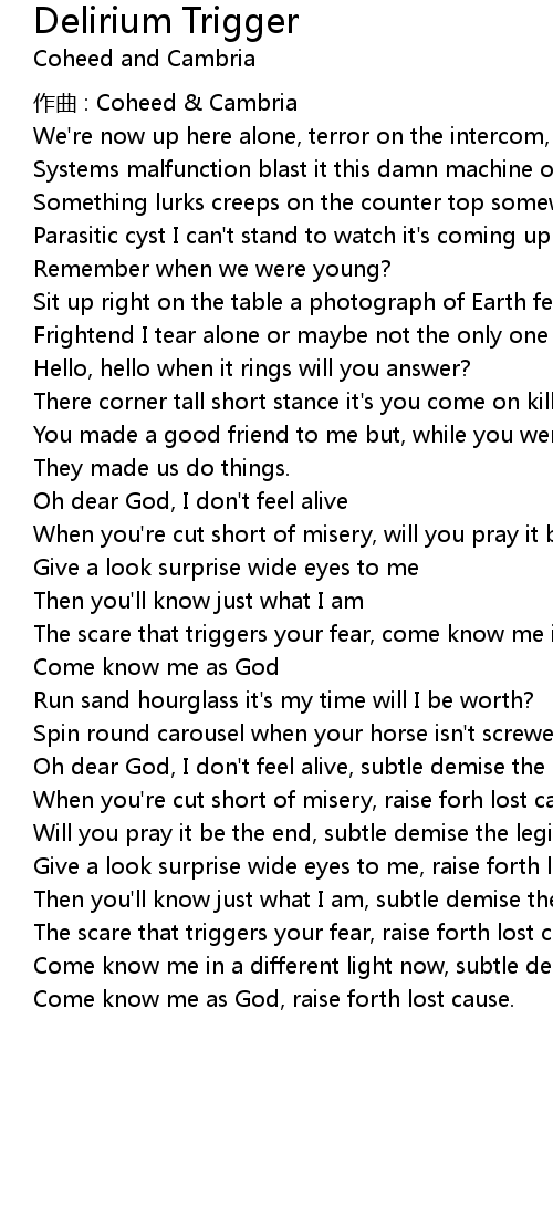 | Oh dear God, I don' t feel alive, subtle demise the legitimate cry | |