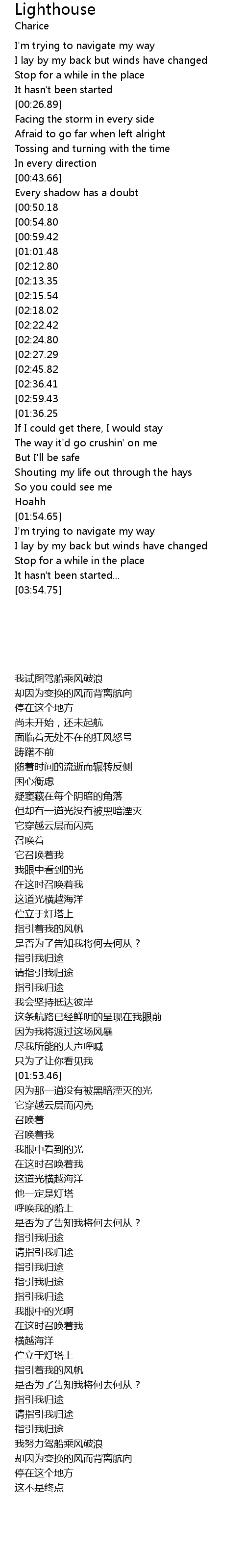 | [03:13.14][02:22.42][01:13.30] | It must be a lighthouse |