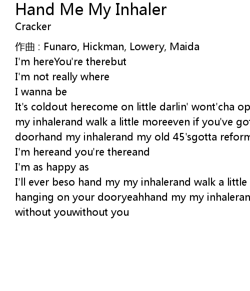 | I'll ever beso hand my my inhalerand walk a little moreeven if you've got sign hanging on your dooryeahhand my my inhalerand my old 45'sgotta reform the band without youwithout you |