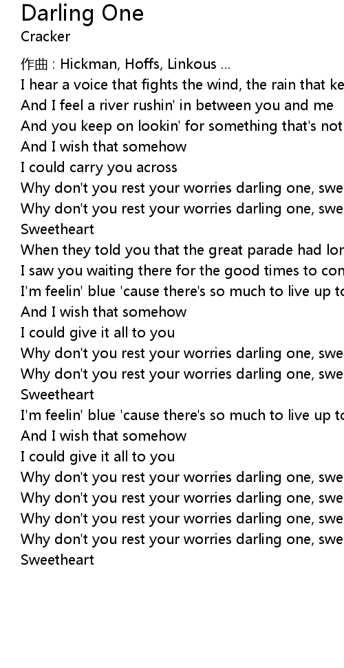 | Why don' t you rest your worries darling one, sweetheart? | |