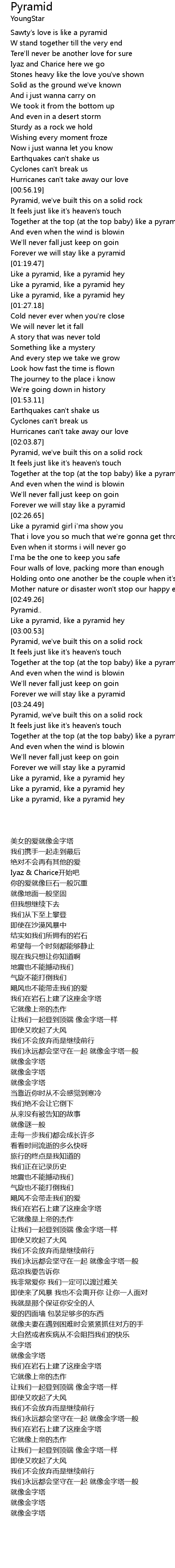 | [03:19.20] | Forever we will stay like a pyramid |